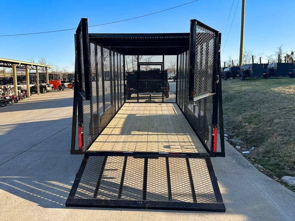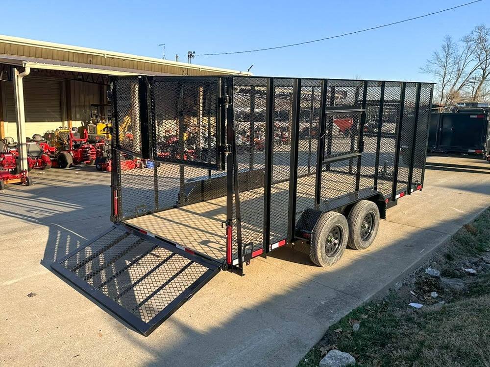 - Reinforced loading gate with an upper barn door: The gate on the trailer is reinforced with 5 supports in addition to the outside 2 supports. This is more than most trailer manufacturers will add and it ensures the gate will not bend over time from daily loading. The gate also will fold inside the trailer so that you can use the full length of the trailer or for transport purposes.