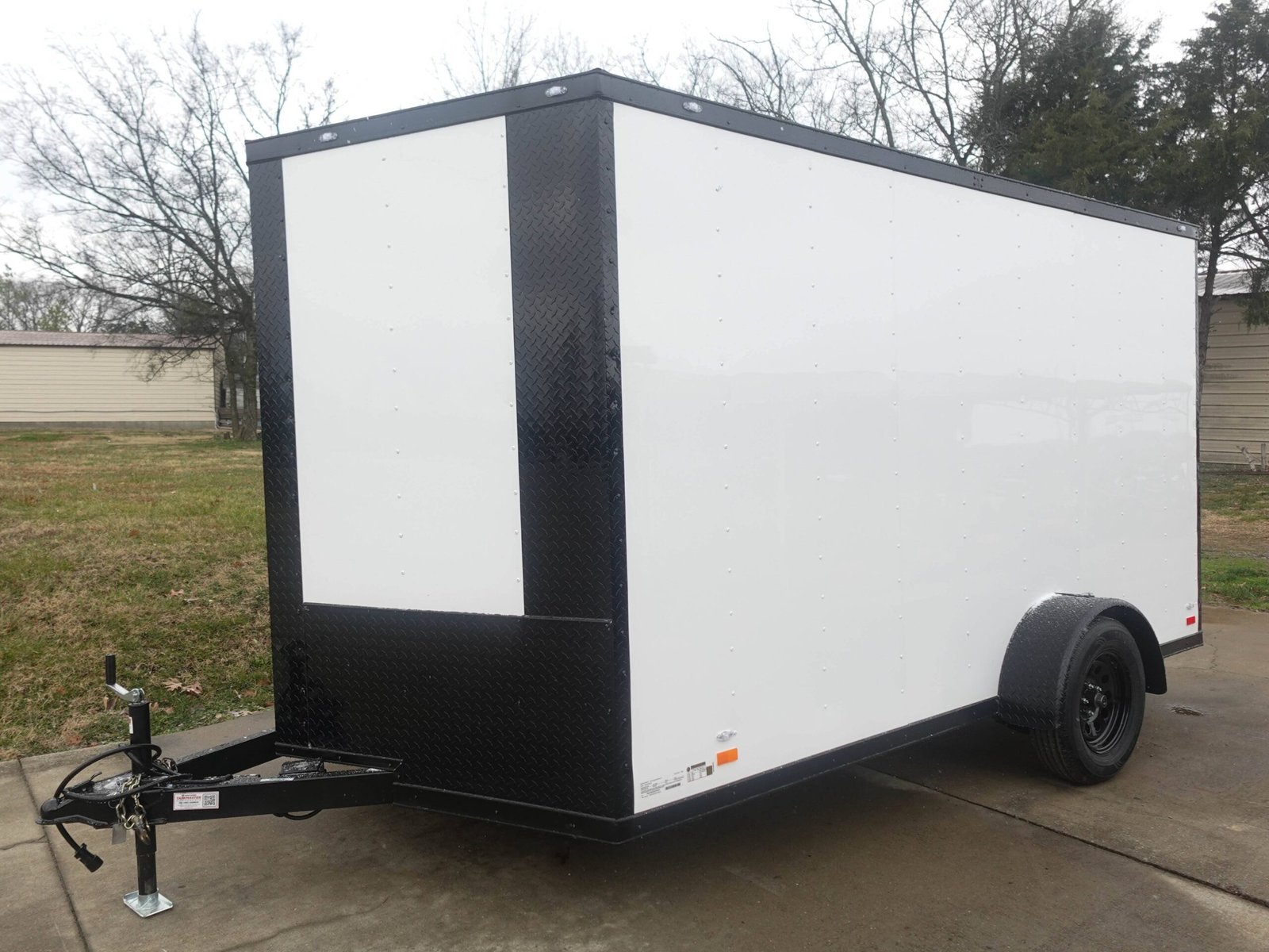 7×12 Enclosed Trailer White V-Nose Blackout Package 3,500lb Axle
