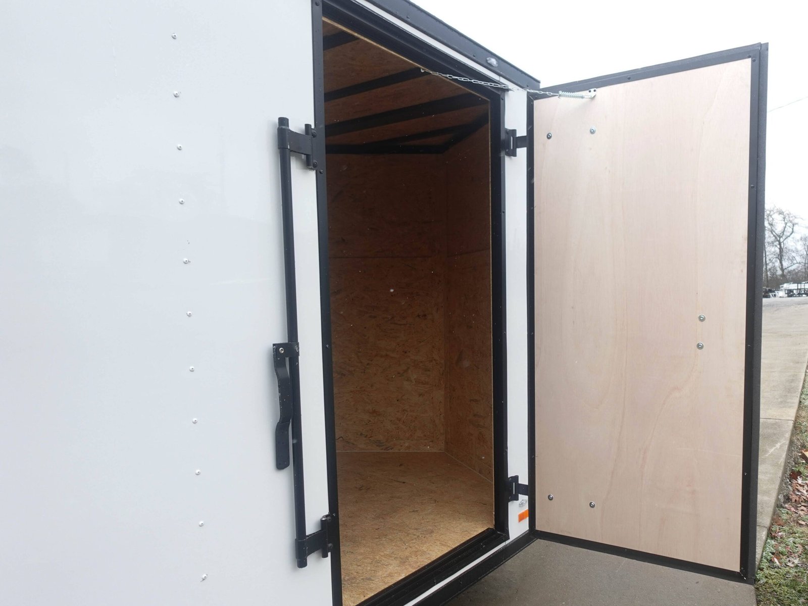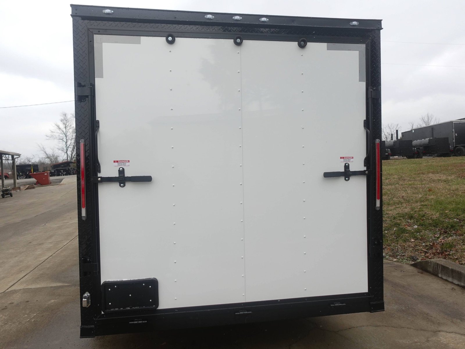 A clean, modern white finish is accented with a bold blackout trim, giving this trailer a sharp, professional appearance that’s ideal for any job site. -