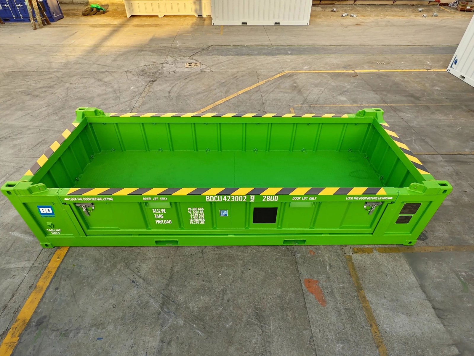 Compared to taller containers, these containers can hold heavy and dense bulk goods. Pad eye on each corner make it easier to lift the container. In addition, this container is equipped with several lashing points to help secure your cargo! Contact us now to get the best price and quality containers.